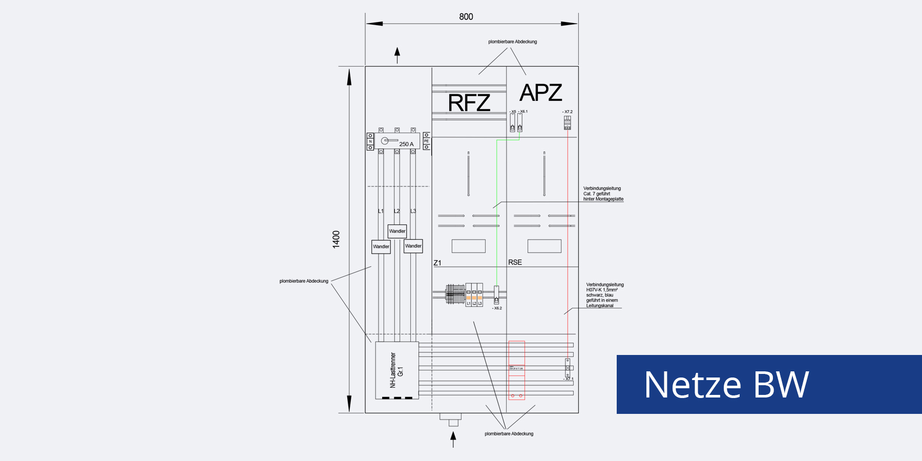 Der Messwandlerschrank Netze BW entspricht den Vorgaben der aktuellen TAB Netze BW. Er wird hauptsächlich in Baden Württemberg benötigt.